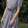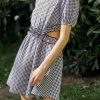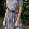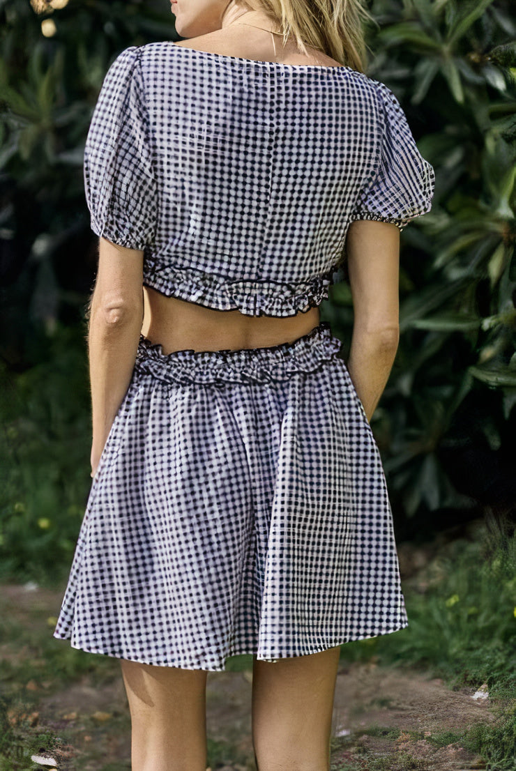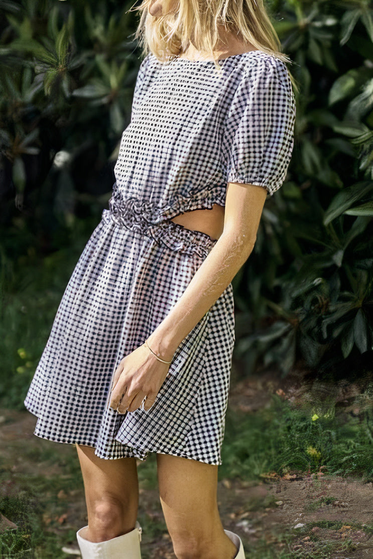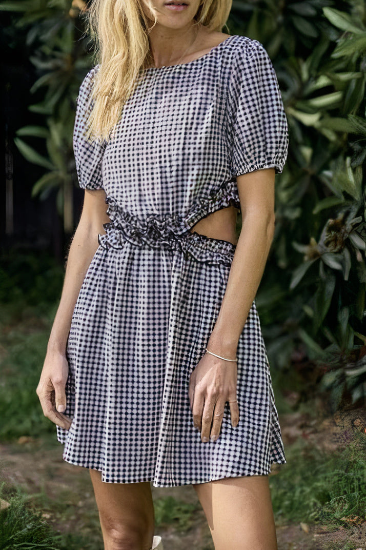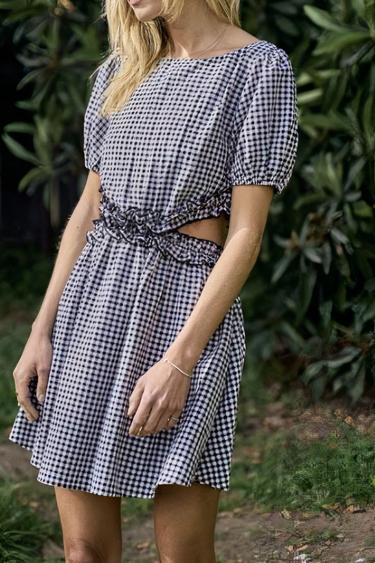 GINGHAM PLAID RUFFLE DETAIL CUT OUT MINI DRESS – BLACK