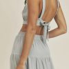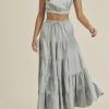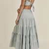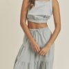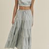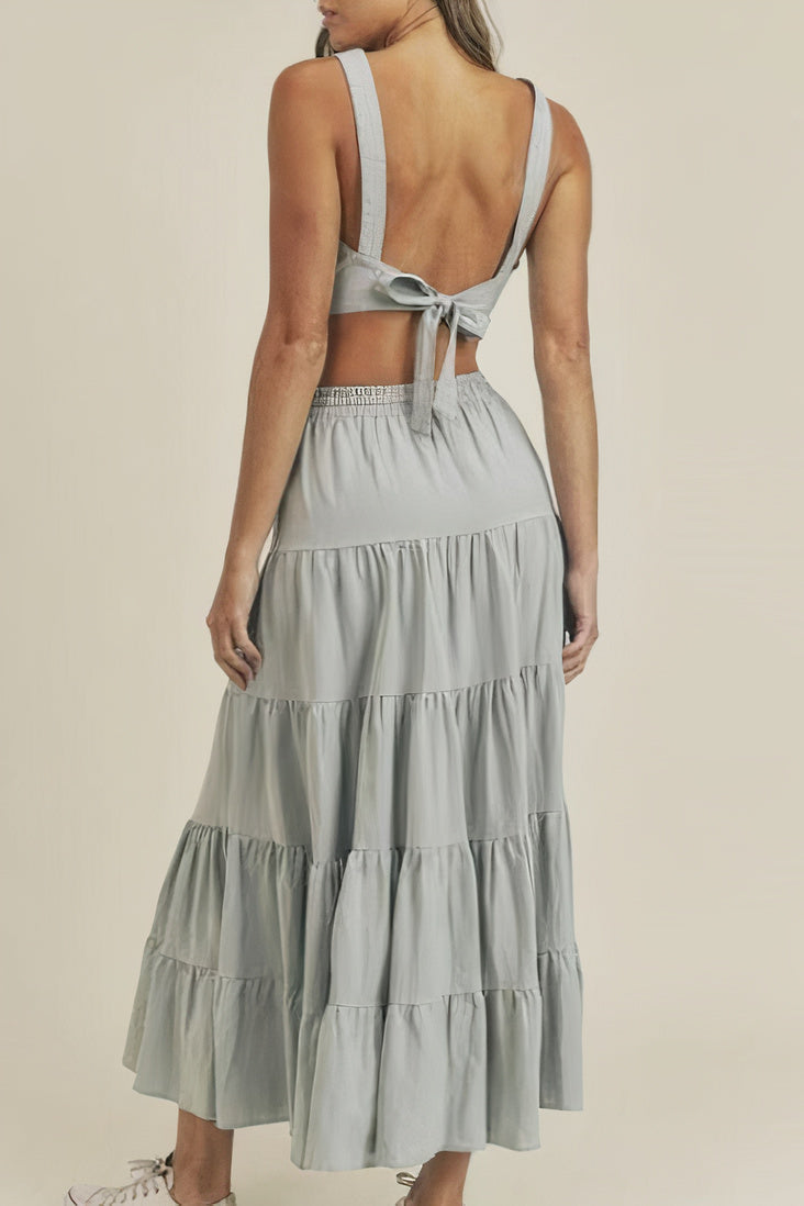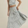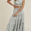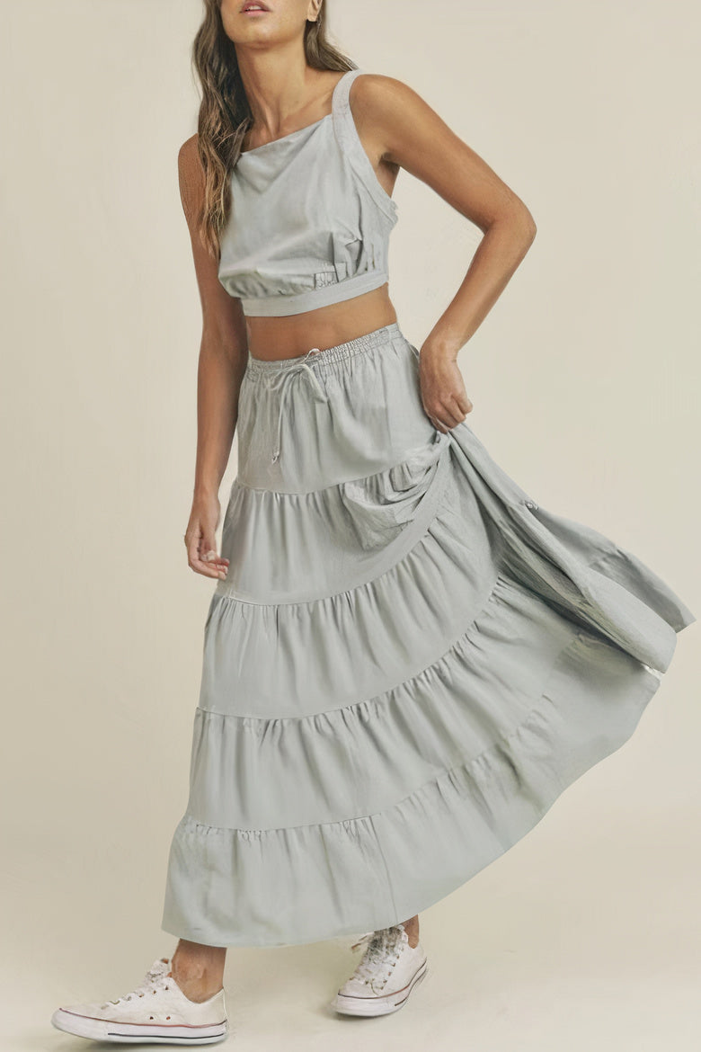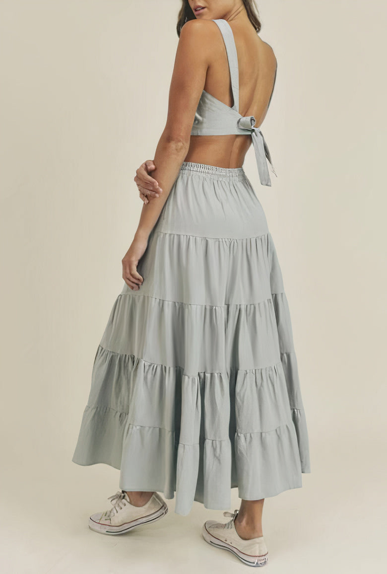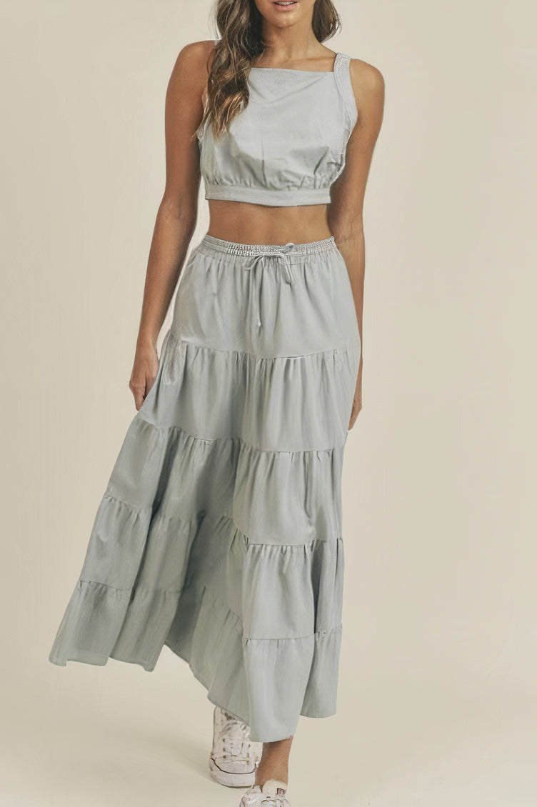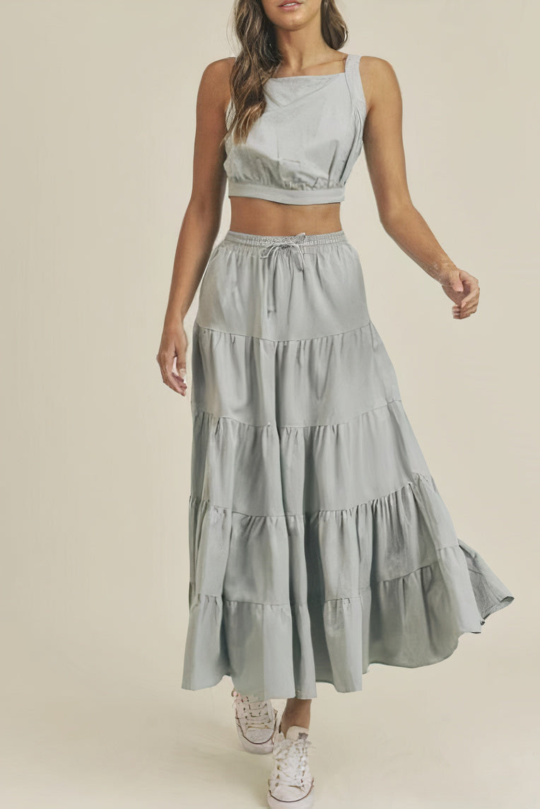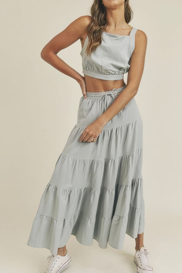 / LINEN MIX CROP TOP AND RUFFLE TIER MIDI SKIRT SET – DUSTY BLUE