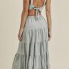 LINEN MIX CROP TOP AND RUFFLE TIER MIDI SKIRT SET - DUSTY BLUE quantity